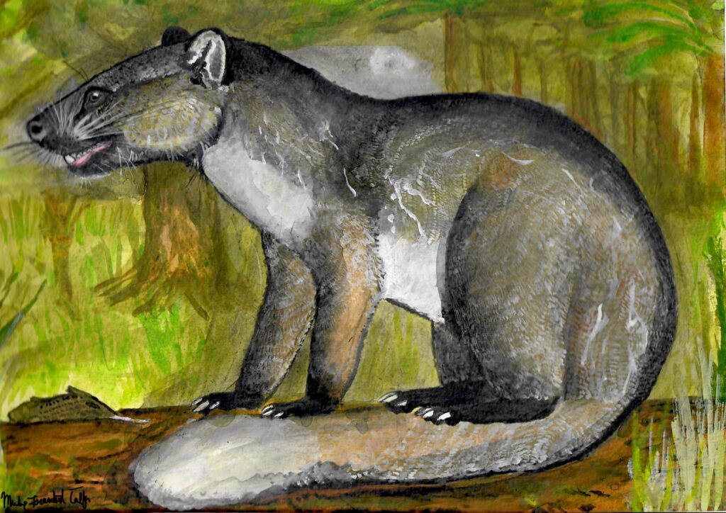 Perhaps one of the best still-living examples of these small carnivorans that we can compare to our extinct species, in terms of ecology is the enigmatic african palm civet (Nandinia binotata). As well as with others, they resemble the ancestral body plan of the earliest arctoids that all others subsequently evolved from.